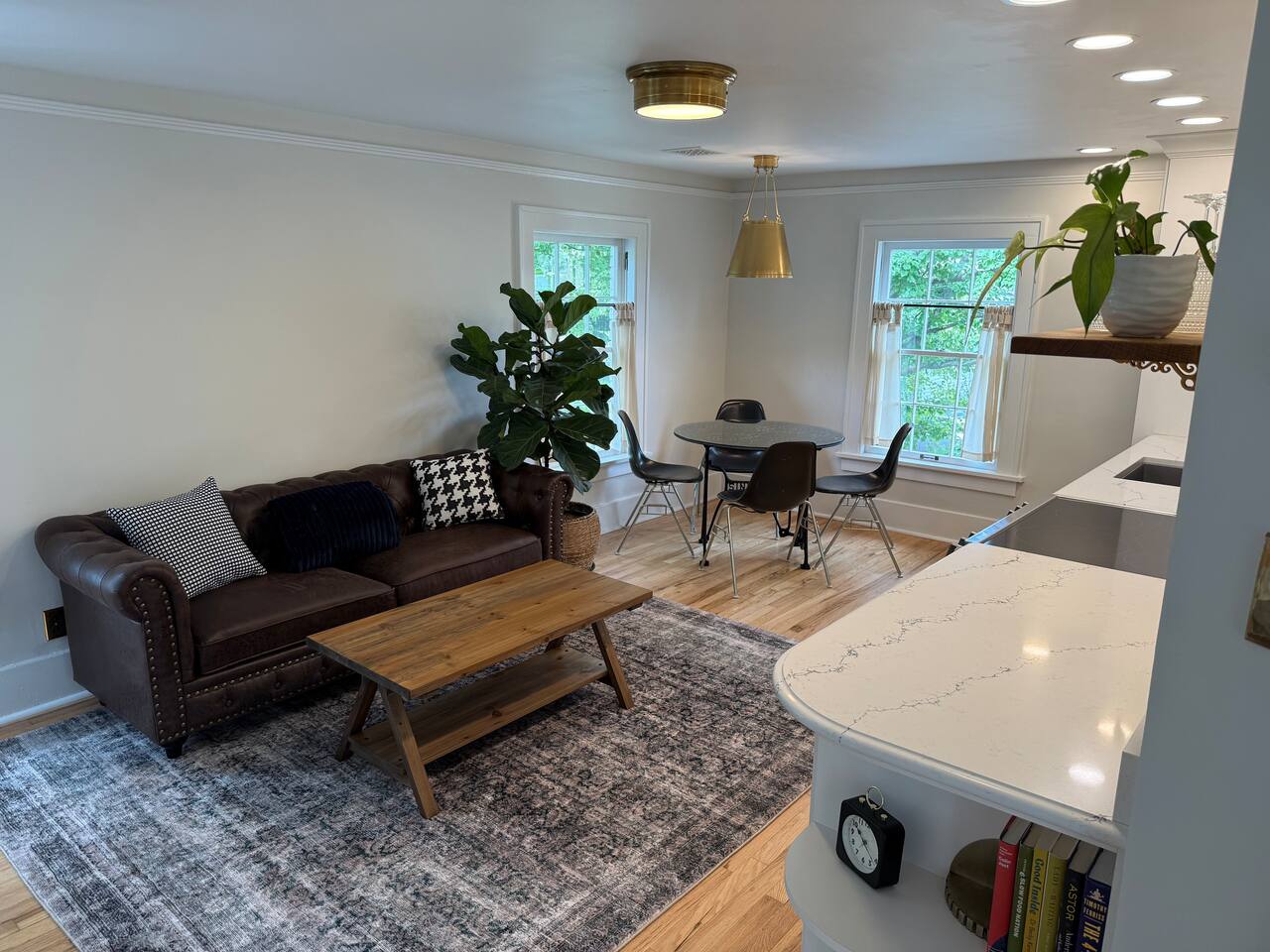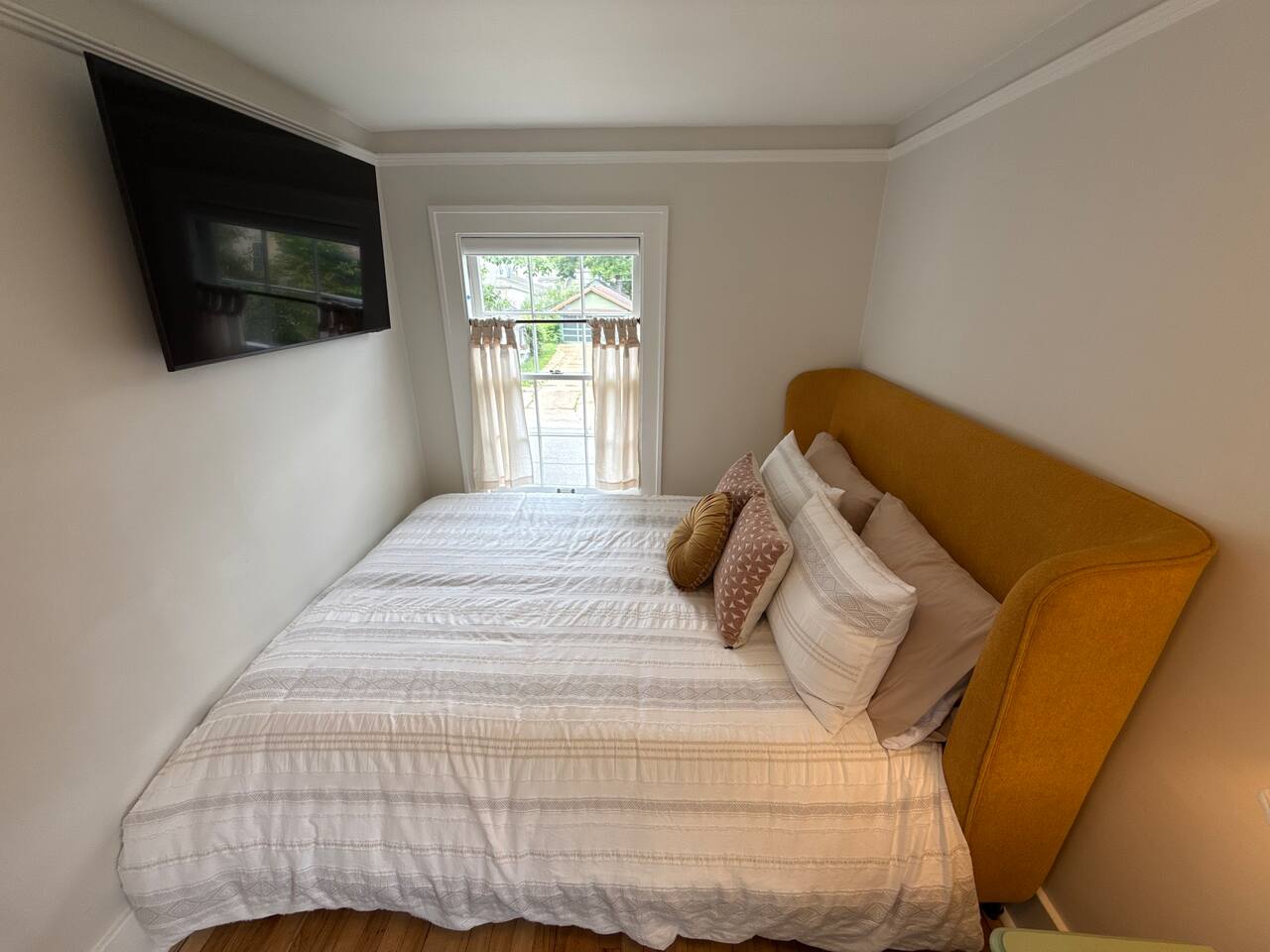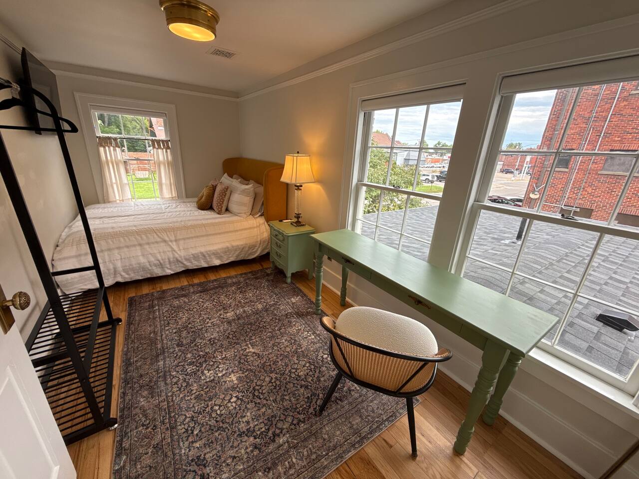 Welcome to our newly renovated Historic Hayloft - where you can enjoy a luxurious stay inside the top floors of our Carriage House. Relax and unwind while surrounded by curated vintage decor on a plush leather sofa. Hang out and cook your favorite food in our designer kitchen with quartz countertops. Freshen up while standing on heated marble bathroom floors. Located 1 block off the town square with quick access to parking, restaurants and shops. EV Charger outside.